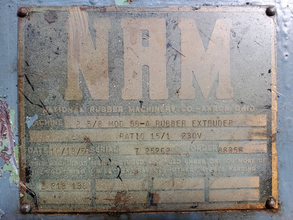 | Item 6410-3 - One (1) Used Gearbox for NRM 2.5" Cold Feed Rubber Extruder, 15:1 G/B ratio, model 50-A, SN T25262 | ||||