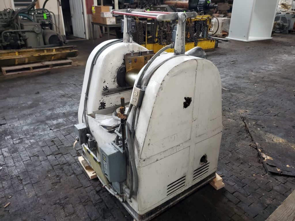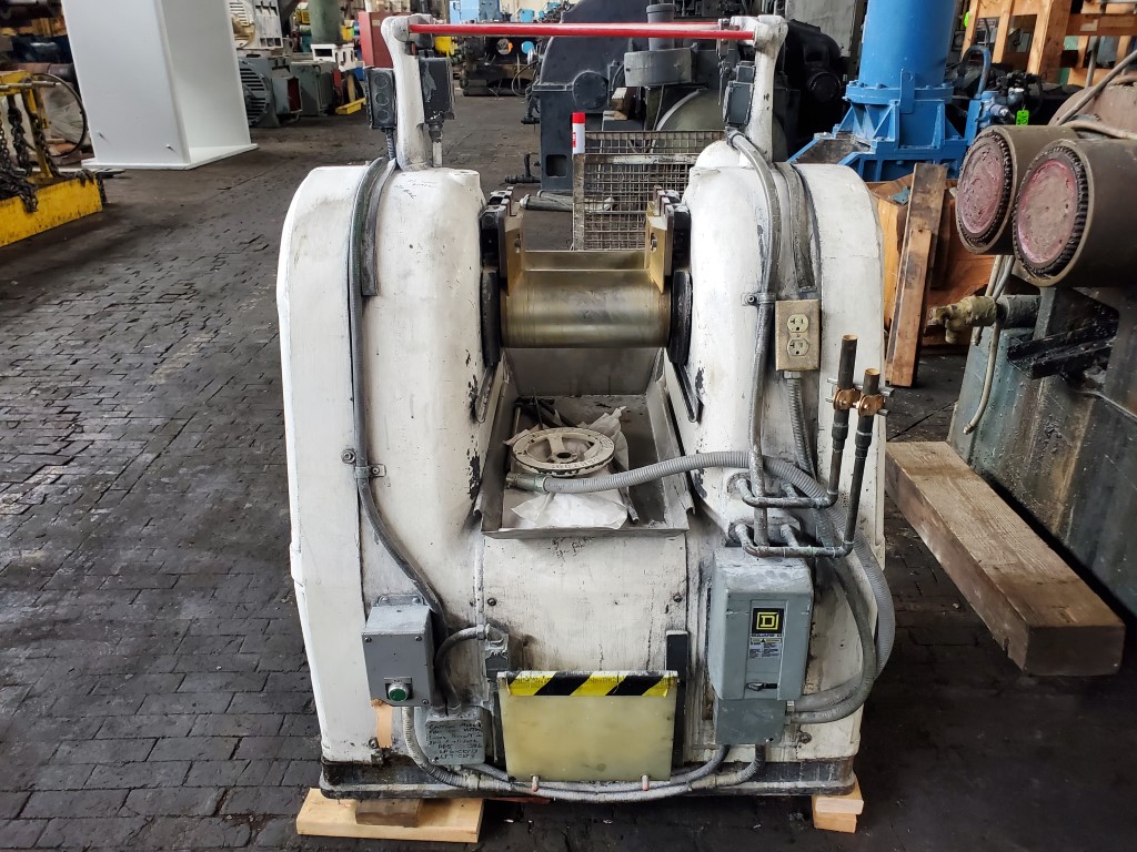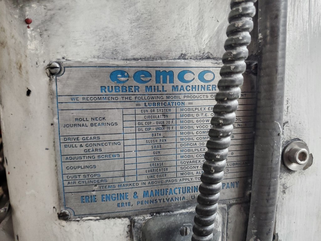 | One (1) Used Eemco Lab Mill, 6 x 13” (150 x 330) rolls, cabinet style, under_slung_drive, belt driven, flip up guides, 7.5 HP 440 VAC brake motor, variable speed, push button controls, knee and overhead pull cradle safety , 40” x 42” x 55”H | ||||