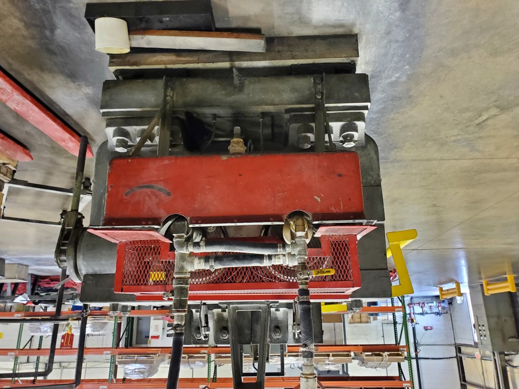 Item 2035 - One (1) Used Kobe 16” x 42” 2-Roll Rubber Mill, strip mill, US Electric motor 60 HP, 880 RPM, 460 VAC, Westinghouse starter, Kobe gearbox, direct drive, connecting gears, unitized base, top cap design, full circle bronze bushings with automatic lubrication, manual nip adjustment, mechanical safety brake, overhead cradle