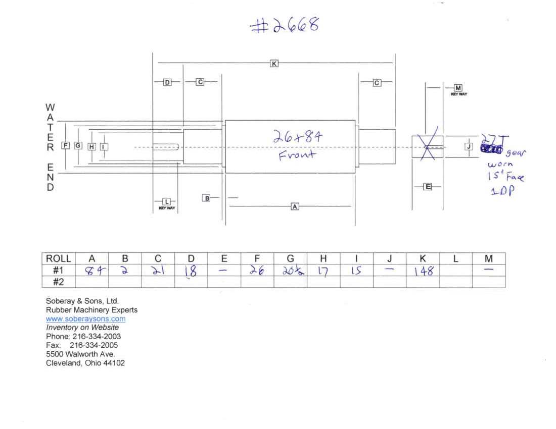 | Farrel | 1 | 26" x 84" 650x2100 | Mill Roll Front | Rolls |