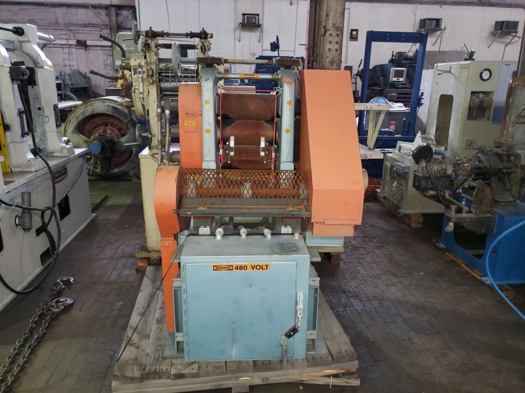 | One (1) Used Bolling 6x12 3-Roll Lab Calender, US Varidrive motor 440 VAC, Cabinet style, under-slung drive, manual nip adjustment top and bottom, cast endframes, automatic lubrication | ||||