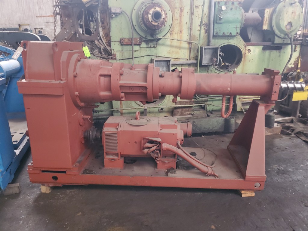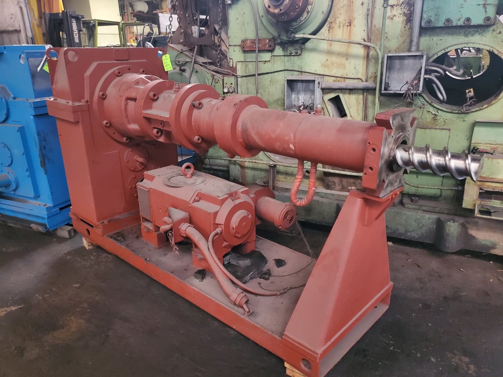 | Item 6064 - One (1) Used NRM 4.5" 120mm Cold Feed Rubber Extruder, 12:1 L/D, 25.14:1 G/B ratio, Reliance 75 HP, 1750/2100 RPM, 500 VDC motor, missing feed roll assembly | ||||